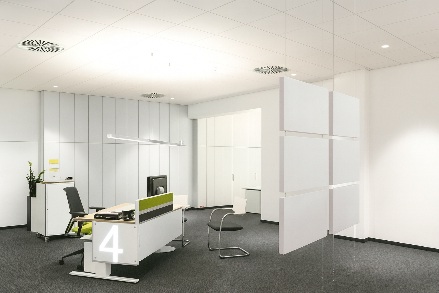 A instalação pode ser feita em tetos, paredes ou elementos suspensos, inclusive em espaços já ocupados.